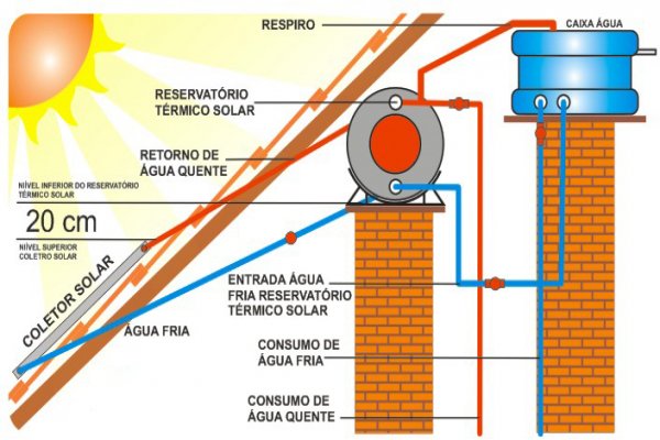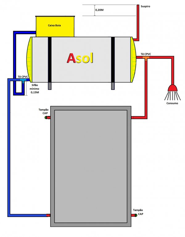 O Aquecedor Solar Asol pode ser alimentado diretamente com água da rua, graças ao dispositivo Caixa Bóia para quebra de pressão.